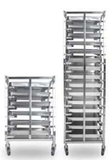 ชั้นวางถาดเบเกอรี่ นิยมใช้กันอย่างมากในอุตสาหกรรมอาหาร และเบเกอรี่โดยเฉพาะ ผลิตจากสแตนเลสคุณภาพ แข็งแรง น้ำหนักเบา ติดตั้งง่าย มากับล้อหมุนอิสระ พร้อมตัวล็อค ชั้นวางถาดจะช่วยให้คุณสะดวกในการทำงานมากยิ่งขึ้น (ไม่รวมถาดอบขนม)